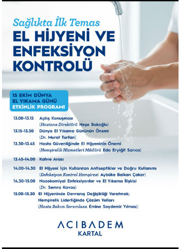 Acıbadem Kartal Hastanesinde “El Hijyen ve Enfeksiyon Kontrolü” programı 15 Ekim 2025 tarihinde etkinlik konferans salonunda gerçekleşti.