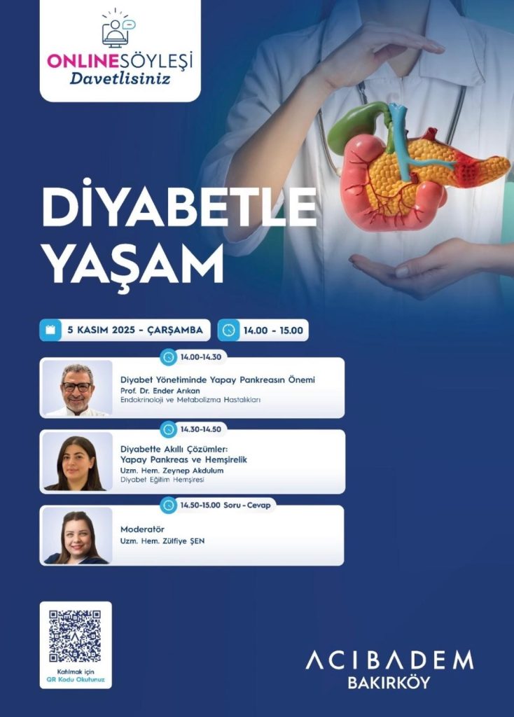 5 Kasım 2025 tarihinde Acıbadem Bakırköy Hastanesi’nin düzenlediği “Diyabetle Yaşam” söyleşisi sağlık profesyonelleri ve diyabetle yaşayan bireyleri bir araya getirdi.