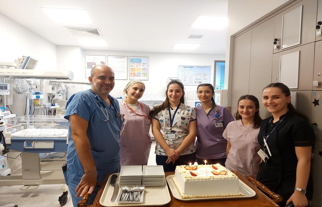 Dünya Prematüre Günü kapsamında, Yenidoğan Yoğun Bakım Ünitesi’nde hekimler, hemşireler ve yöneticilerin bir araya geldiği küçük ama anlamlı bir kutlama gerçekleştirildi. Ünitede özveriyle çalışan tüm ekibe teşekkür edilerek, bu özel haftanın anlamı hatırlandı.