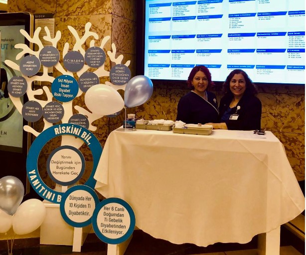 14 Kasım 2025 “Dünya Diyabet Günü” kapsamında 14 Kasım 2025 tarihinde Acıbadem International Hastanesi Lobi de “Kan şekeri ölçümü” için stant kurulmuştur.