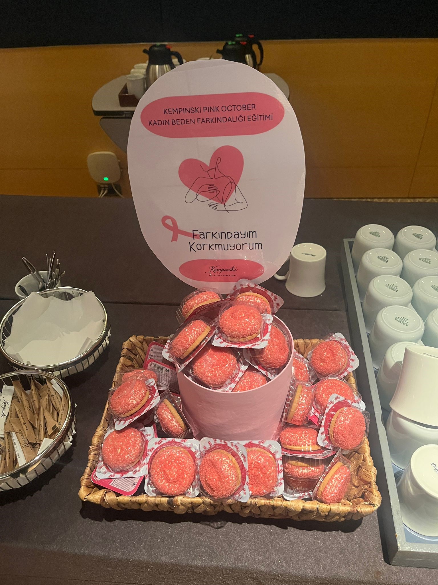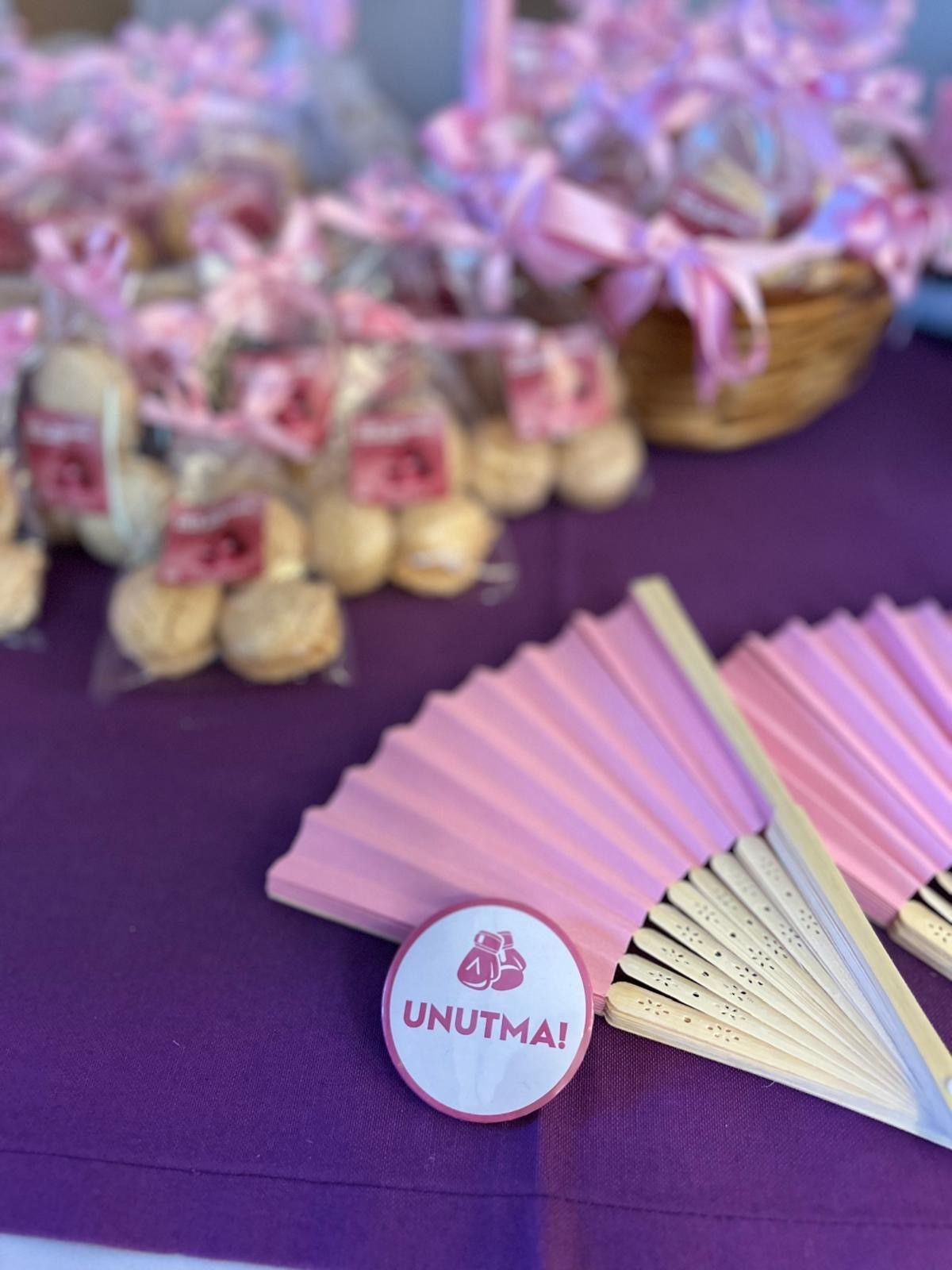 Farkındalık simgesi olarak katılımcılara pembe kurdeleler takıldı, bilgilendirici broşürler dağıtıldı ve pembe temalı afişler ve balonlar ile stant süslendi.